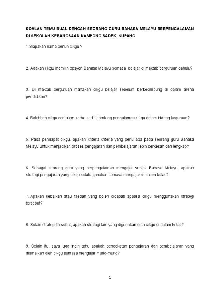 Berlatih menggunakan dialog ini dan kemudian. Simpan Simpan Soalan Temu Bual Untuk Nanti. SOALAN TEMU BUAL - CONTOH TEMUBUAL BERSTRUKTUR.